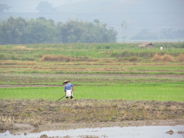 But Yingjiang is different. It has maybe 100,000 people but feels smaller than that. It’s only 30 miles from the border with Burma so there’s a strong Burmese influence. Yunnan Province, where Yingjiang is, has the greatest concentration of ethnic minorities in China so there are a number of different languages, styles of dress, etc. on display in places like Yingjiang. It’s a heavily agricultural region so you pass lots of people working in rice fields, growing watermelon and tomatoes, and planting sugar and coffee for sale.