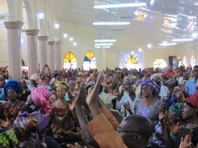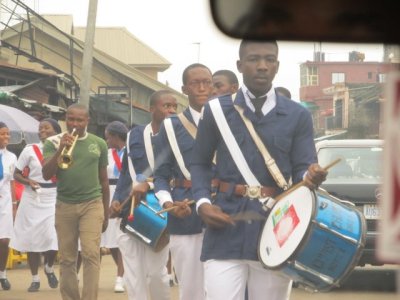 Then, a few block short of Christ Church – right in the middle of Owerri’s sprawling market – we were met by a band. A band! There were about six trumpets and a few drummers. The bishop put on his stole, screwed together his collapsible crozier, got out of the car, and started waving to shoppers in the market and blessing all who passed by.