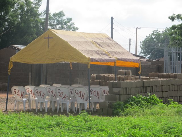 I visited a new church plant in Bachure, a small neighbourhood of Yola. The congregation is led by a seminary student, Joe, and his wife. (Since he is often away at school, she does most of the teaching, preaching, and leading. But women can’t be ordained in Nigeria. Go figure.)